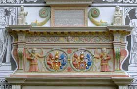 1601, neznámi talianski kamenári a sochári, kameň, 555 × 276 × 48 cm. Reštaurovali v r. 2008–2009 Árpád Mézes, akad.soch., Ondrej Csütörtöki, akad. soch., Mgr. art. Juraj Gráfel. Spolupráca: Mgr. art. Ernest Vajčovec, Mgr. art. Július Karcol, Ing. Ernest Vajčovec st., Ján Svitek, Martin Kovács, Erik Fehér, Ing.arch. Peter Hudák, PhD.