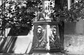 Okolo r. 1900, autor: neznámy sochár, liatina, oceľ, 240 × 90 × 90 cm. Reštauroval v r. 1995–96 Ondrej Csütörtöki, akad. soch. Spolupráca: Štefan Untermajer.