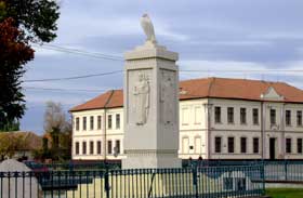1940, autor: sochár Jenő Martinelli, umelý kameň, 390 x 82 x 82 cm Reštaurovali v r. 2005 - 2006 Árpád Mézes, akad. soch. a Ondrej Csütörtöki, akad. soch. s kompletnou rekonštrukciou výtvarnej časti pamätníka, spolupráca: Ing. arch. Peter Hudák, PhD., Mgr. art. Juraj Gráfel, Martin Kovács